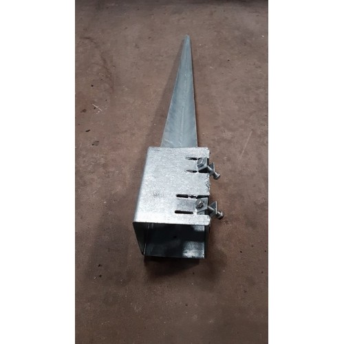 HOT DIPPED GALVANISED METAL CLAMP FENCE SUPPORT SPIKES. Diameter Support Holder: 100mm Length Support Holder: 150mm Length Spike: 600mm Length Overall: 750mm